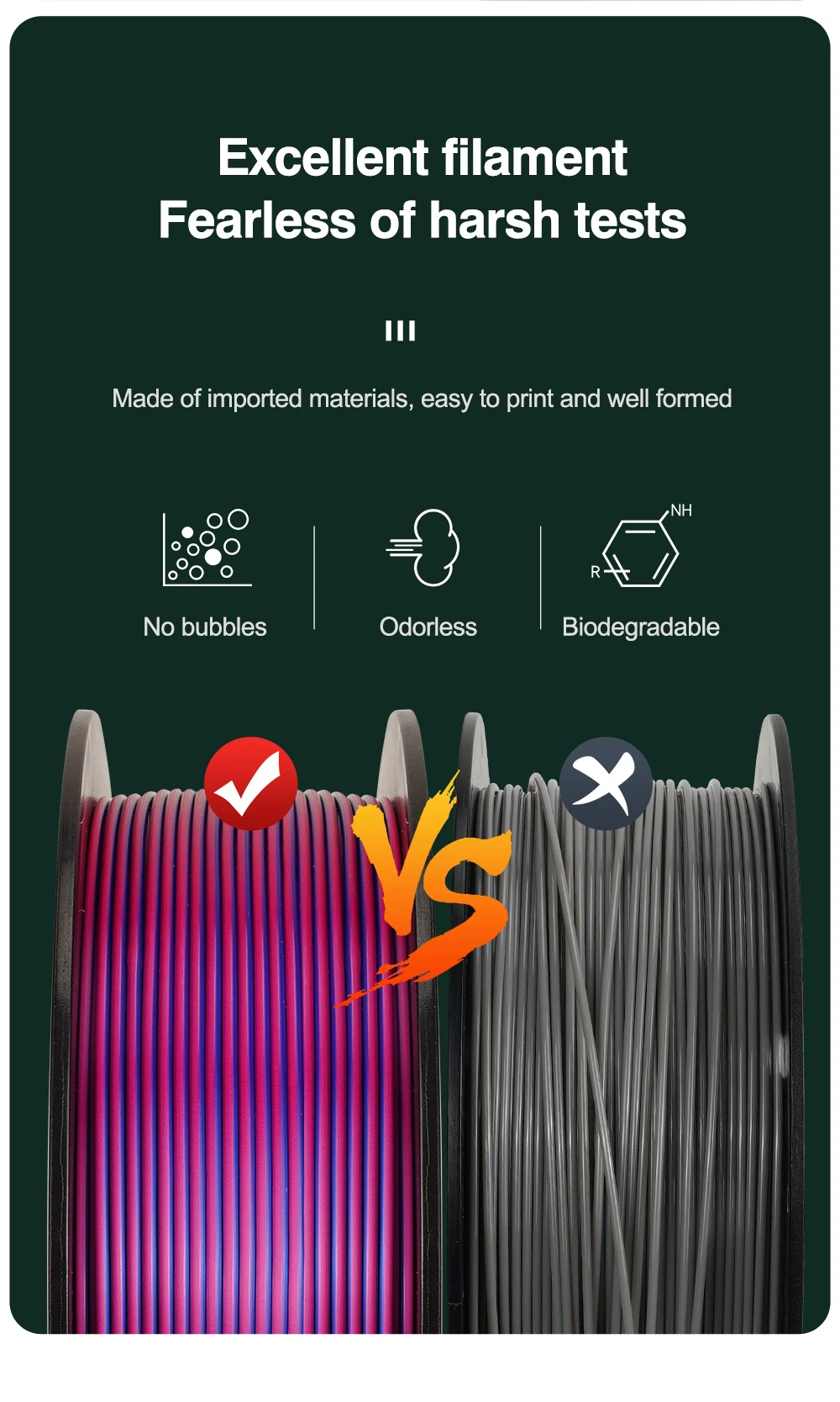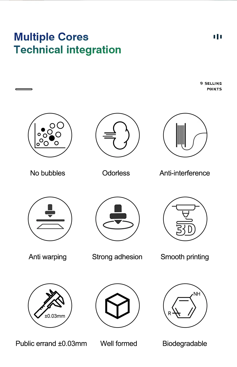 High-concerned chemical / Material / Model Number / Form / Brand Name / Origin / Diameter / Filament type / Gross weight / Color / Bubble / Filament Diameter Tolerances / Package List / Apply for