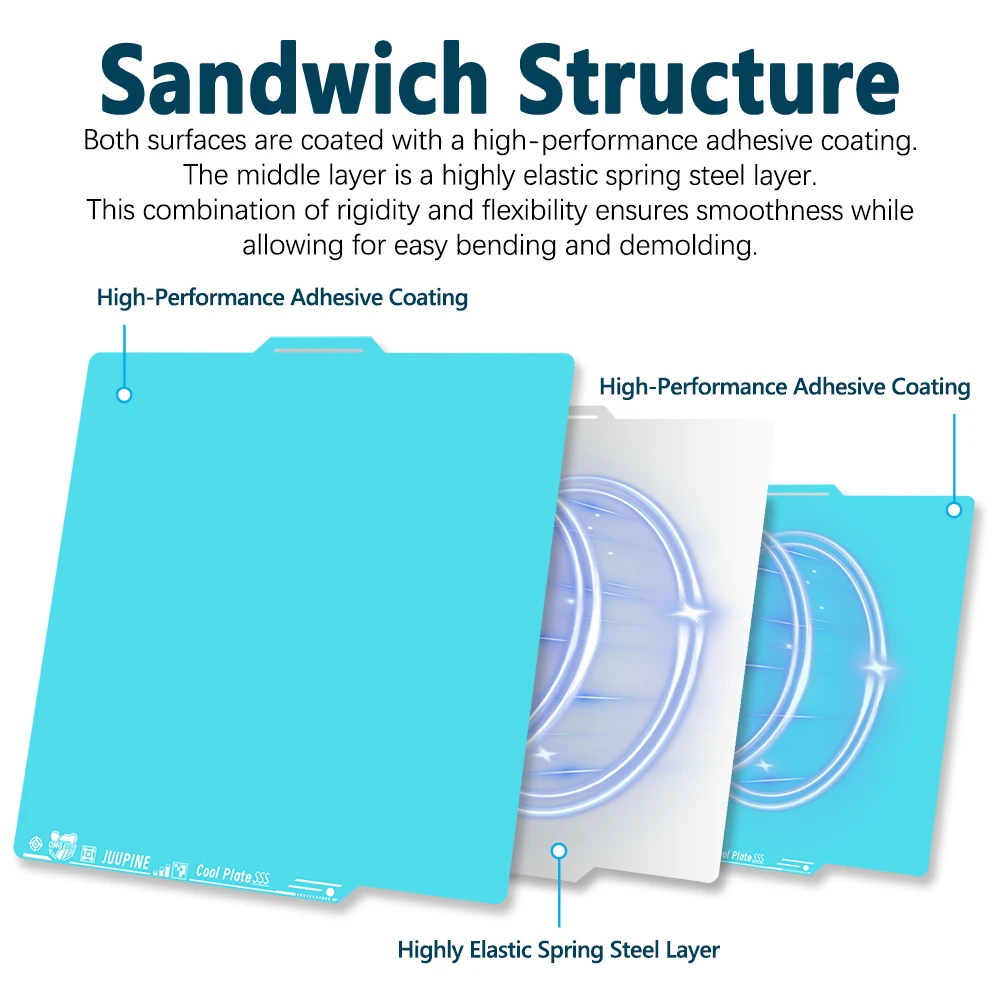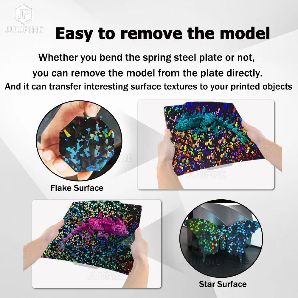 The spring steel sheet comes with two sides , the above and below sides can be used to print, which makes you take full advantage of it. It is very convenient and practical.