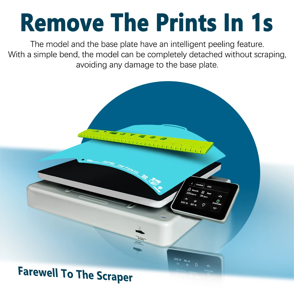 After cool down,you only need to bend the build plate with your hands, and the model can be easily demolded without using other tools.