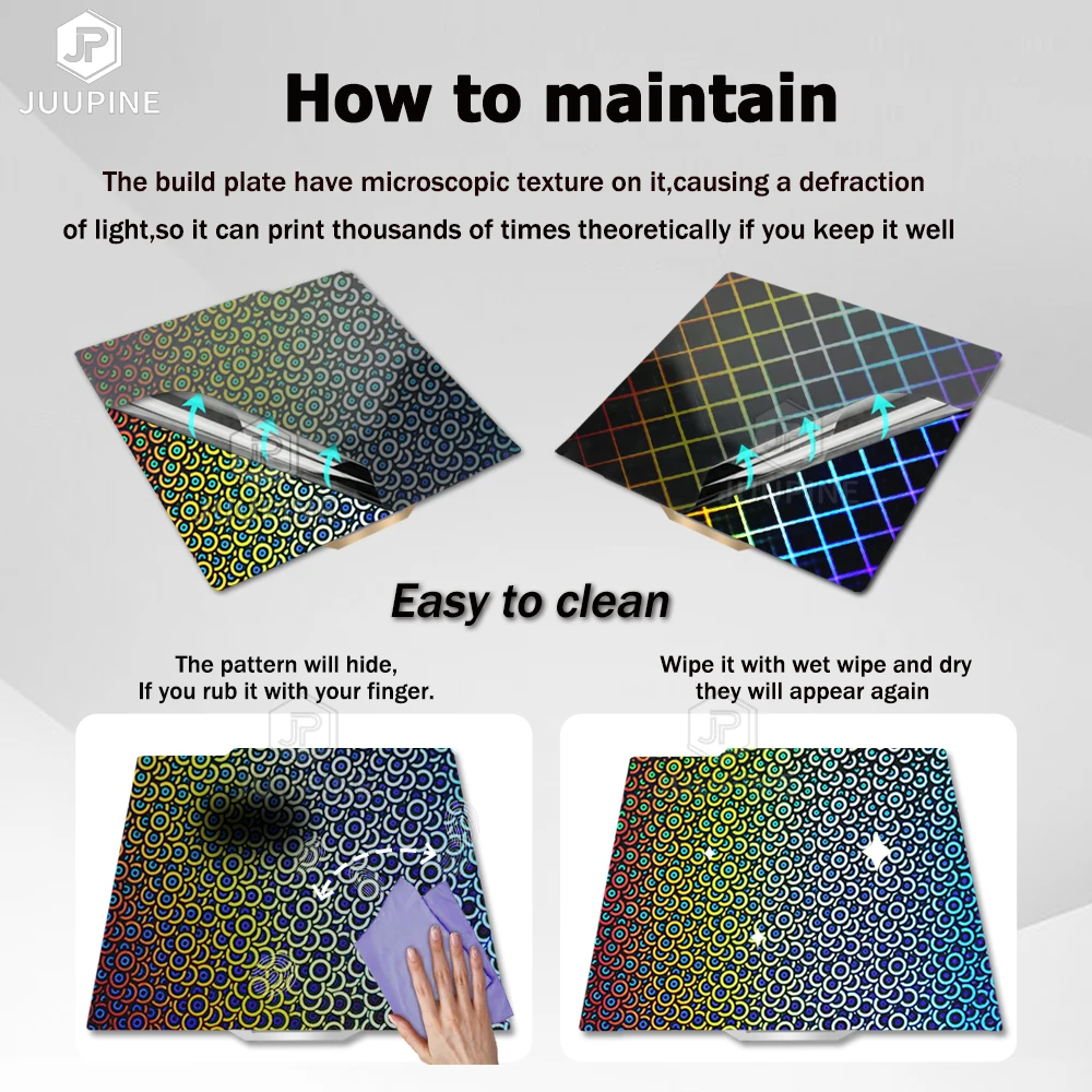 Types:Cool Plate/Double Sided PEI Textured/Honeycomb PEI/ PEI Smooth /PEO PET Smooth /Coloful Holographic Sring Steel Build Plate.