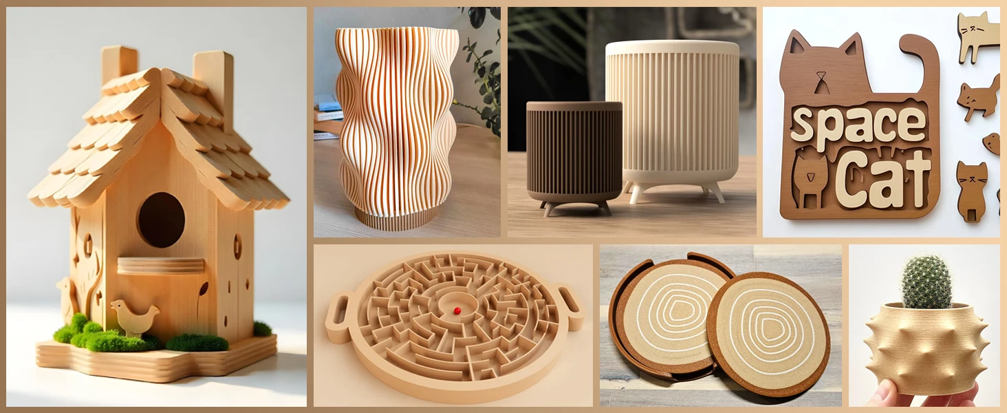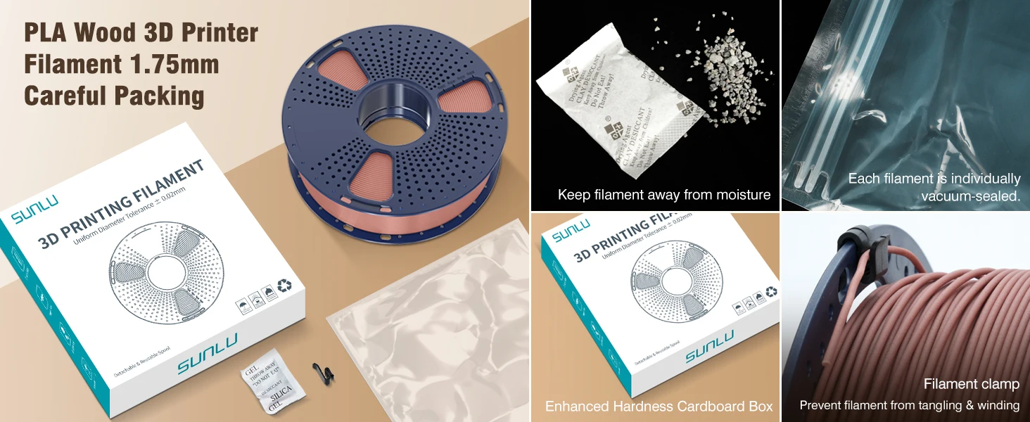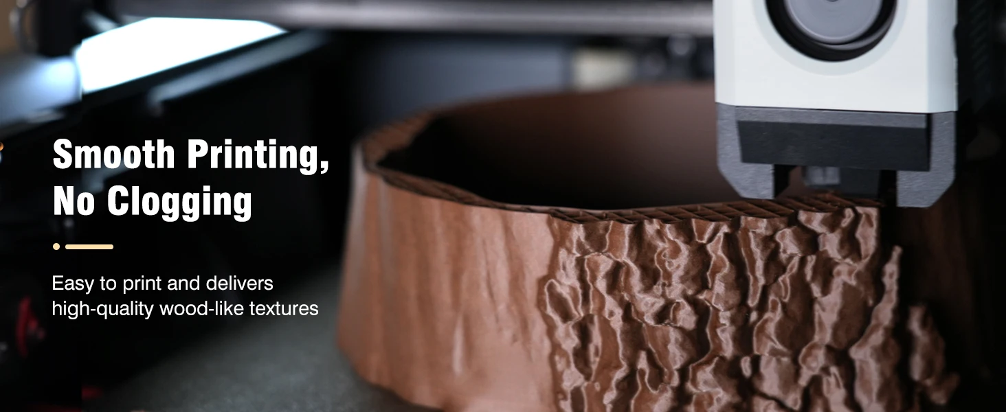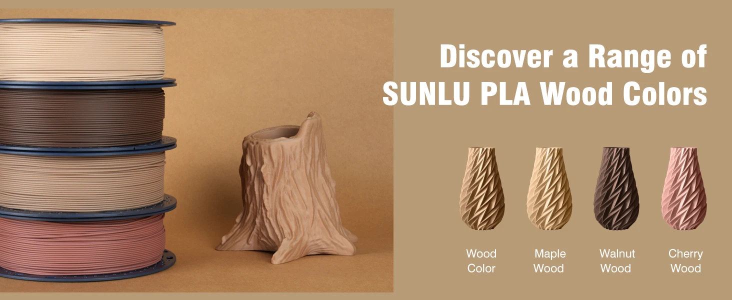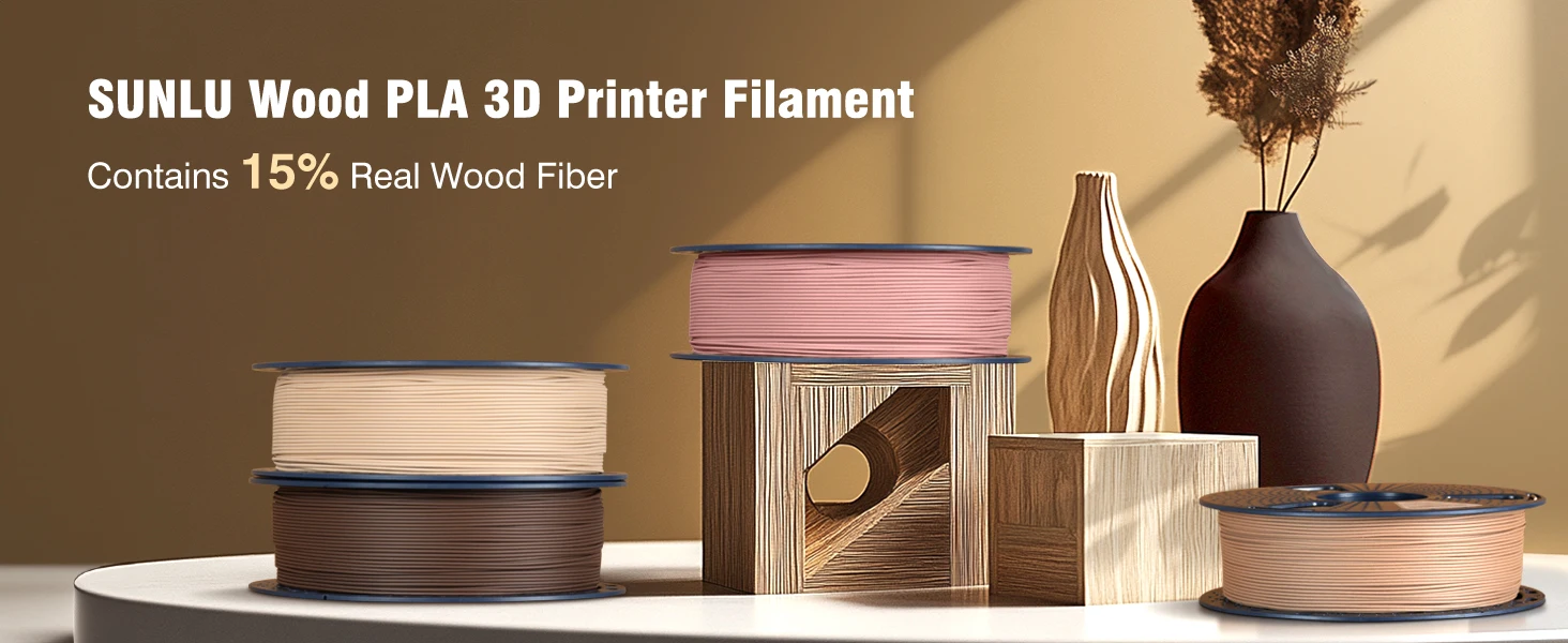 SUNLU 1.75mm PLA filament contains 15% wood fiber instead of wood flour. This ensures the real wood structure and texture. Satisfy the demand for wooden printing models.