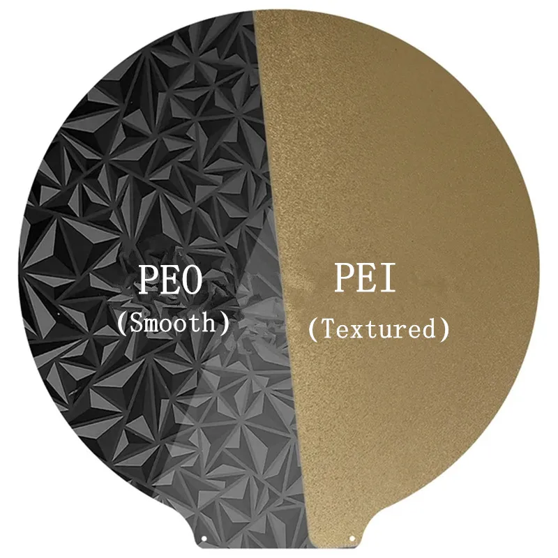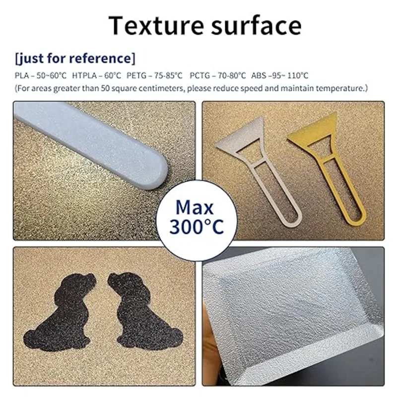 4.Textured PEI coating Surface is up to 300℃.print PLA/PLA+/PETG/ABS/TPU