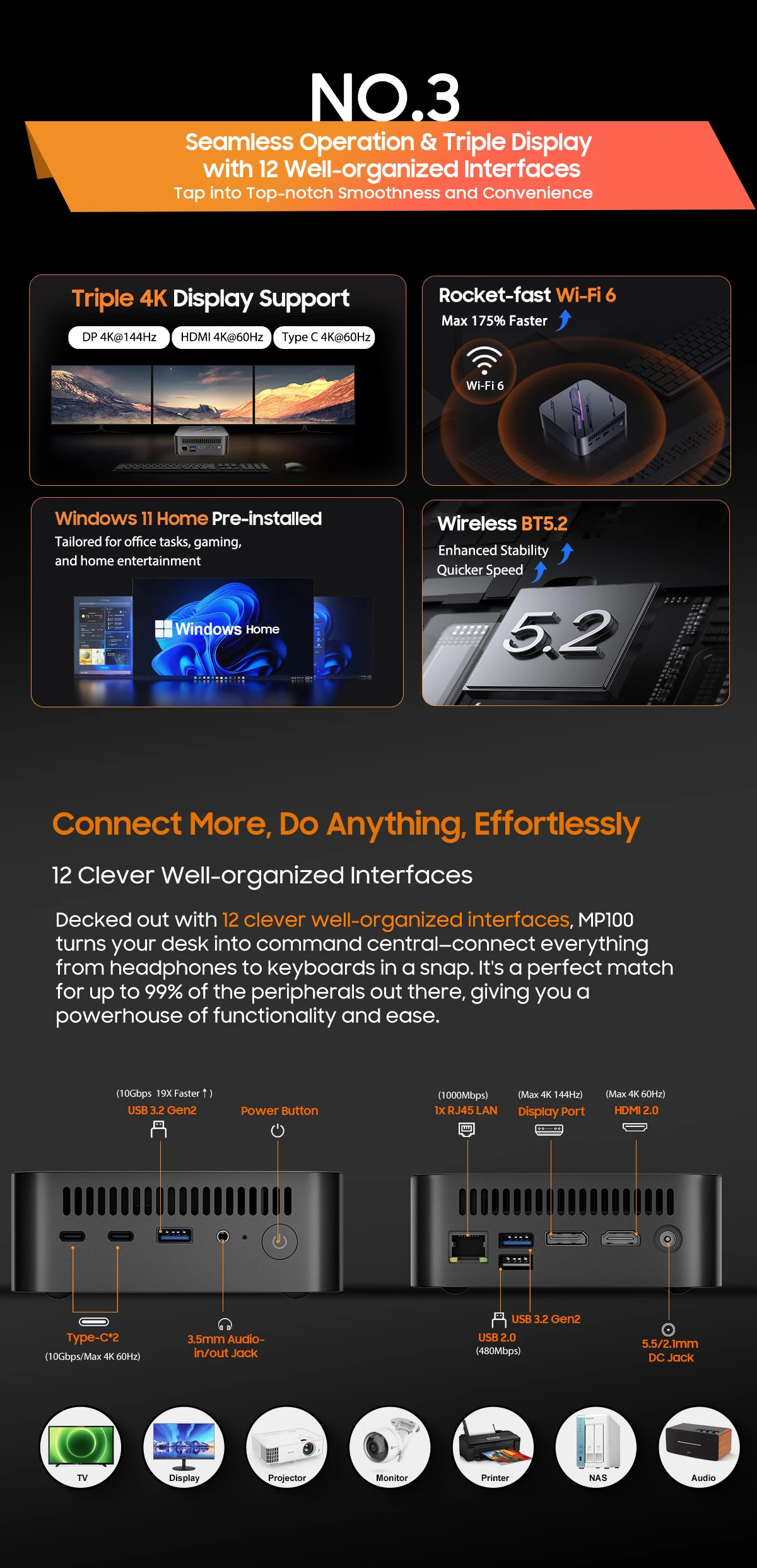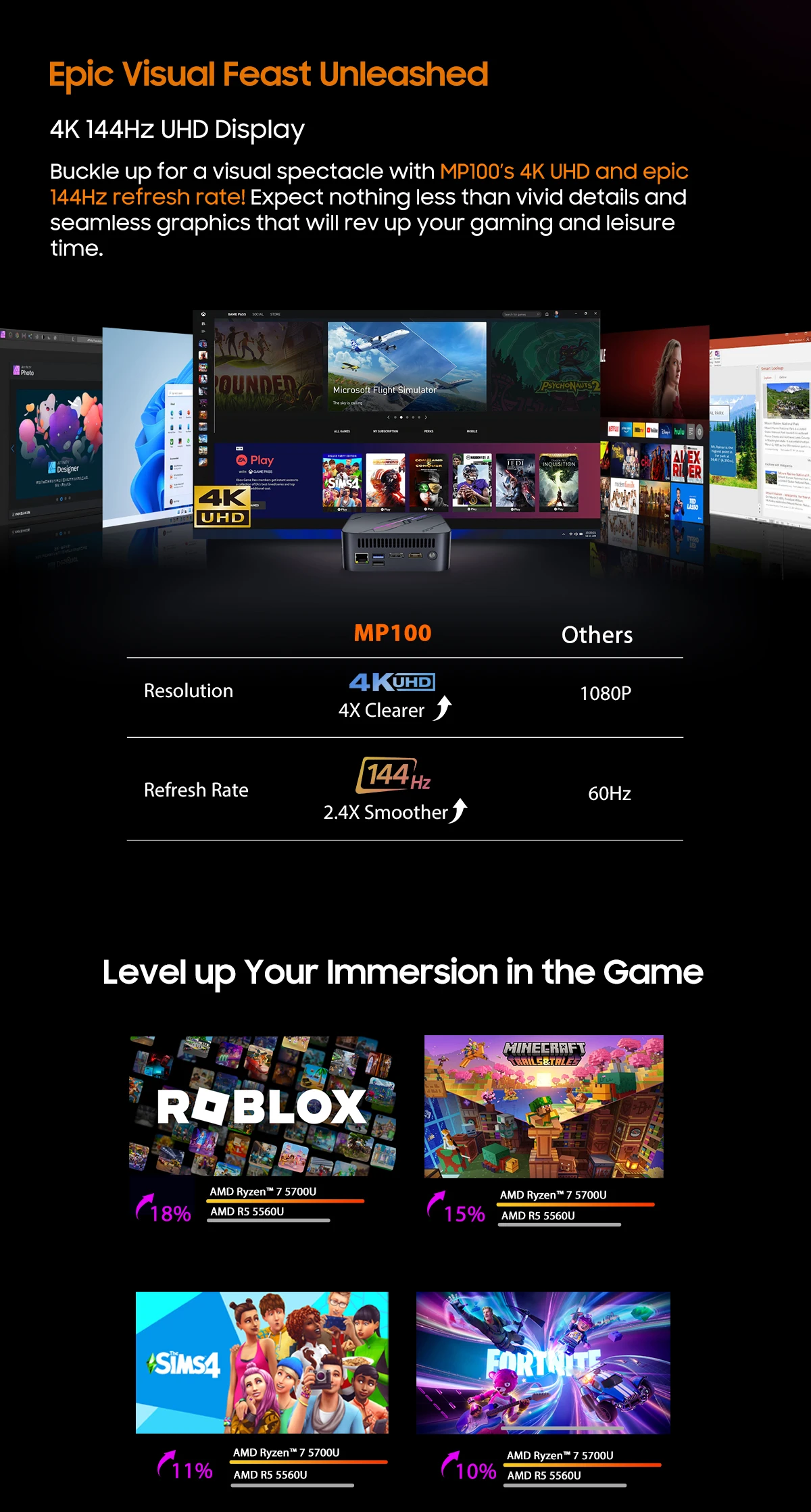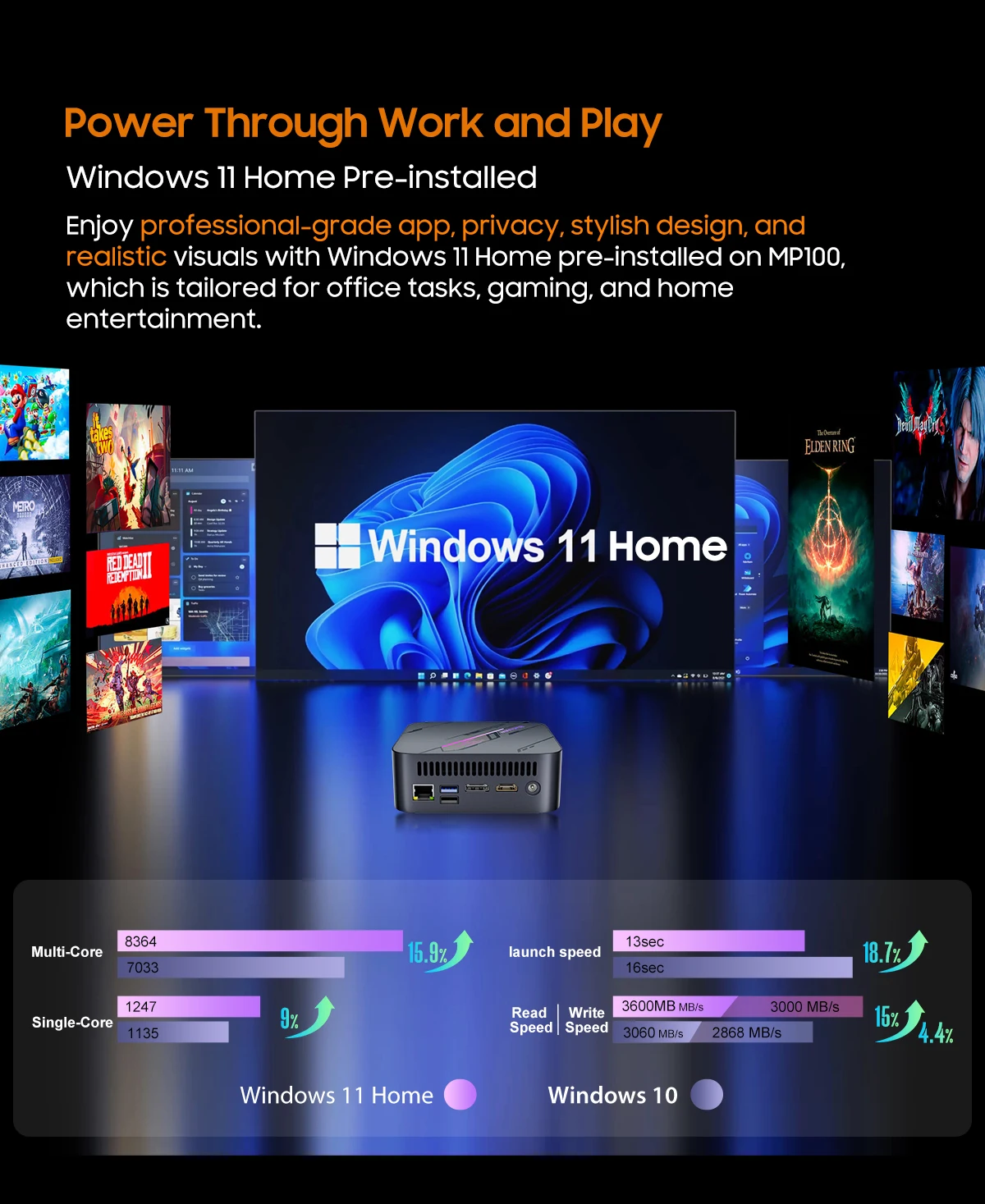 | 【Brand+】Blackview MP100 NEW Mini PC AMD R7 5700U/5825U Windows 11 8-Core 16-thread 16GB DDR4 512GB/1TB SSD WiFi 6 Mini remove | SZBOX S78/S88 Ryzen 7 7840HS/8845HS MINI PC Windows 11 Pro DDR5 5600Mhz PCIe4.0 Nvme SSD WIFI6 BT5.2 Mini PC Gamer Computer remove | MLLSE G3 Mini PC Alder Lake N100 Windows 11 Pro Intel 12th DDR4 8/16GB RAM 256/512GB ROM WiFi 5 BT4.2 Desktop Computer Mini Pc remove | ACEMAGIC Intel N150/N95 Mini Host 11 Pro Desktop 4K Dual Display RAM 16GB SSD 512GB/1TB3.6GHz Suitable for Home/Office MiniPC remove | CHUWI AuBox Mini PC AMD Ryzen7 8745HS 16GB DDR5 512GB SSD WiFi 6 BT 5.1 2.5G LAN Support Quad DisplaysUp to 4K Windows 11 Pro remove | SZBOX T8 Plus Twin Lake N150 MINI PC Windows 11 Pro LPDDR5 8GB/16GB 512GB SSD WIFI5 BT4.2 Desktop Office Gaming Computer remove | |