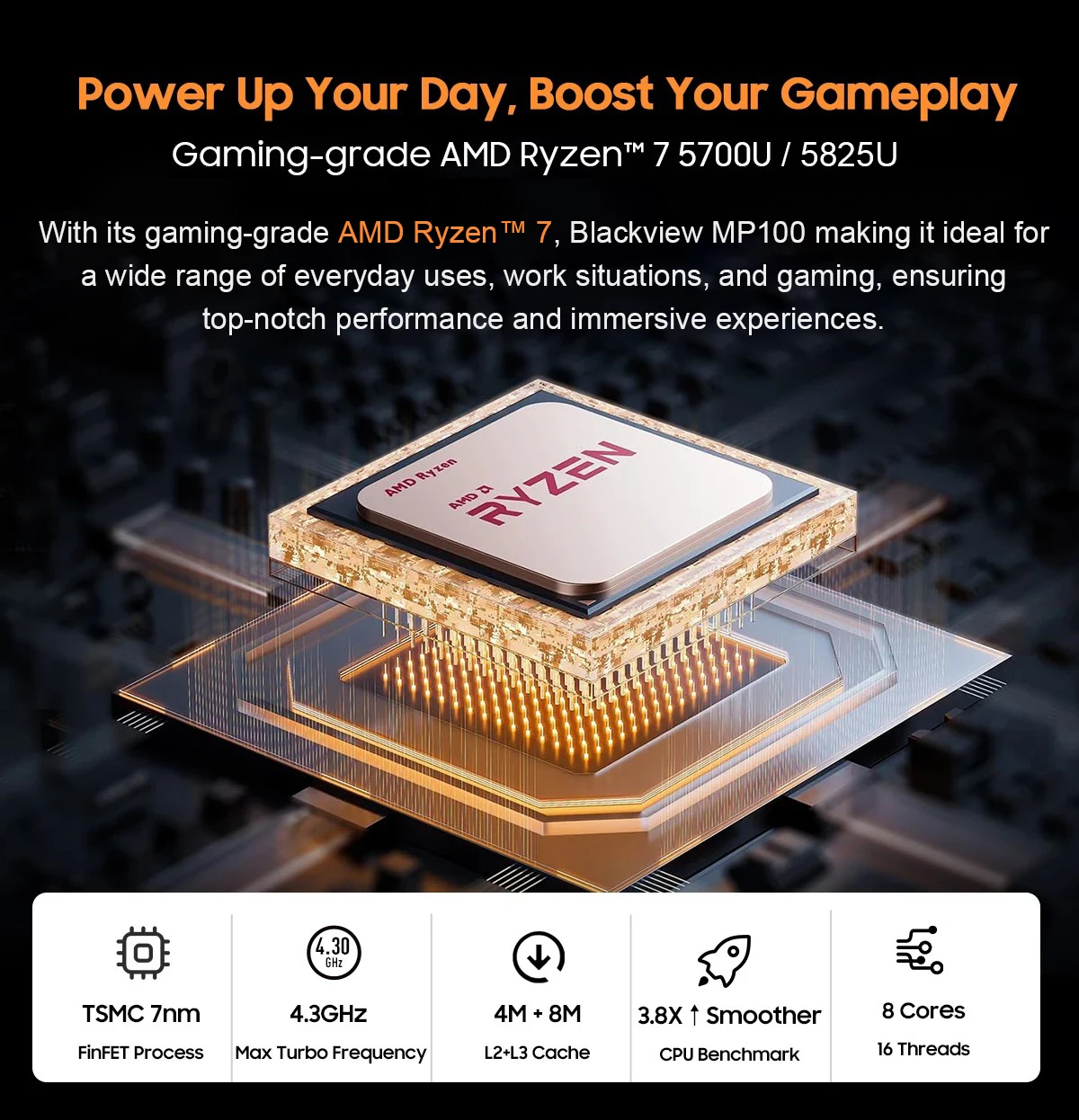 CPU: AMD Ryzen™ 7 5700U/5825U, 8 Cores, 16 Threads