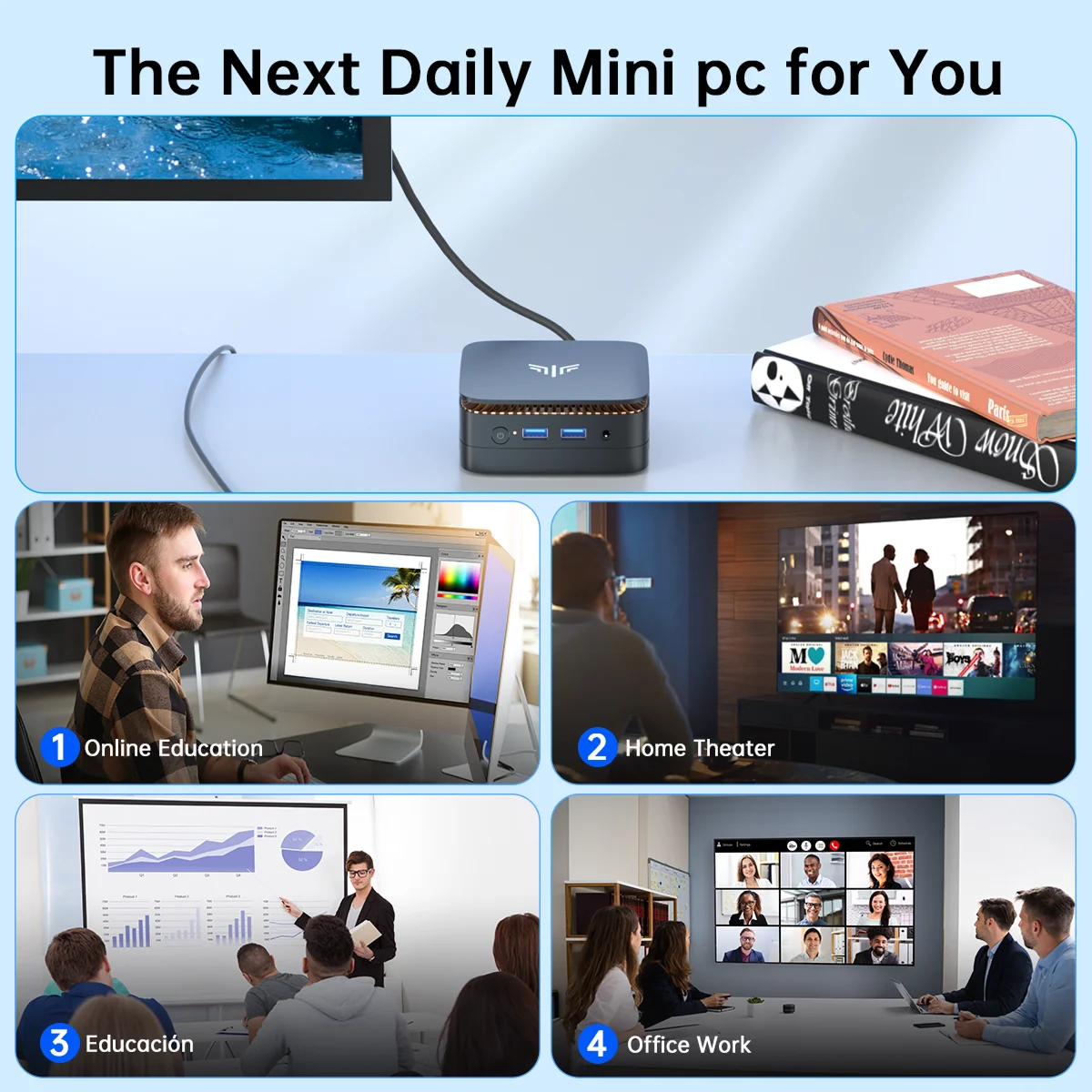 This mini PC is the next daily device for you, excelling in multiple scenarios. It’s perfect for online education, creating a home theater, supporting classroom education, and handling office work. Whether you’re learning, entertaining, teaching, or working, it’s your all – round companion for daily life.