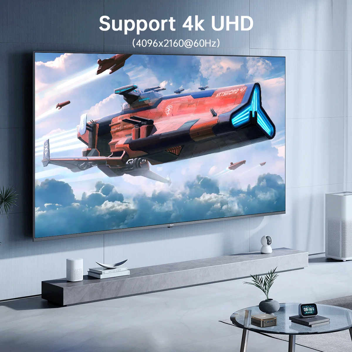 This device supports 4k UHD (4096×2160@60Hz), delivering incredibly sharp and detailed visuals. Whether you're watching movies, gaming, or working with high-resolution content, it offers an immersive visual feast that brings every detail to life.