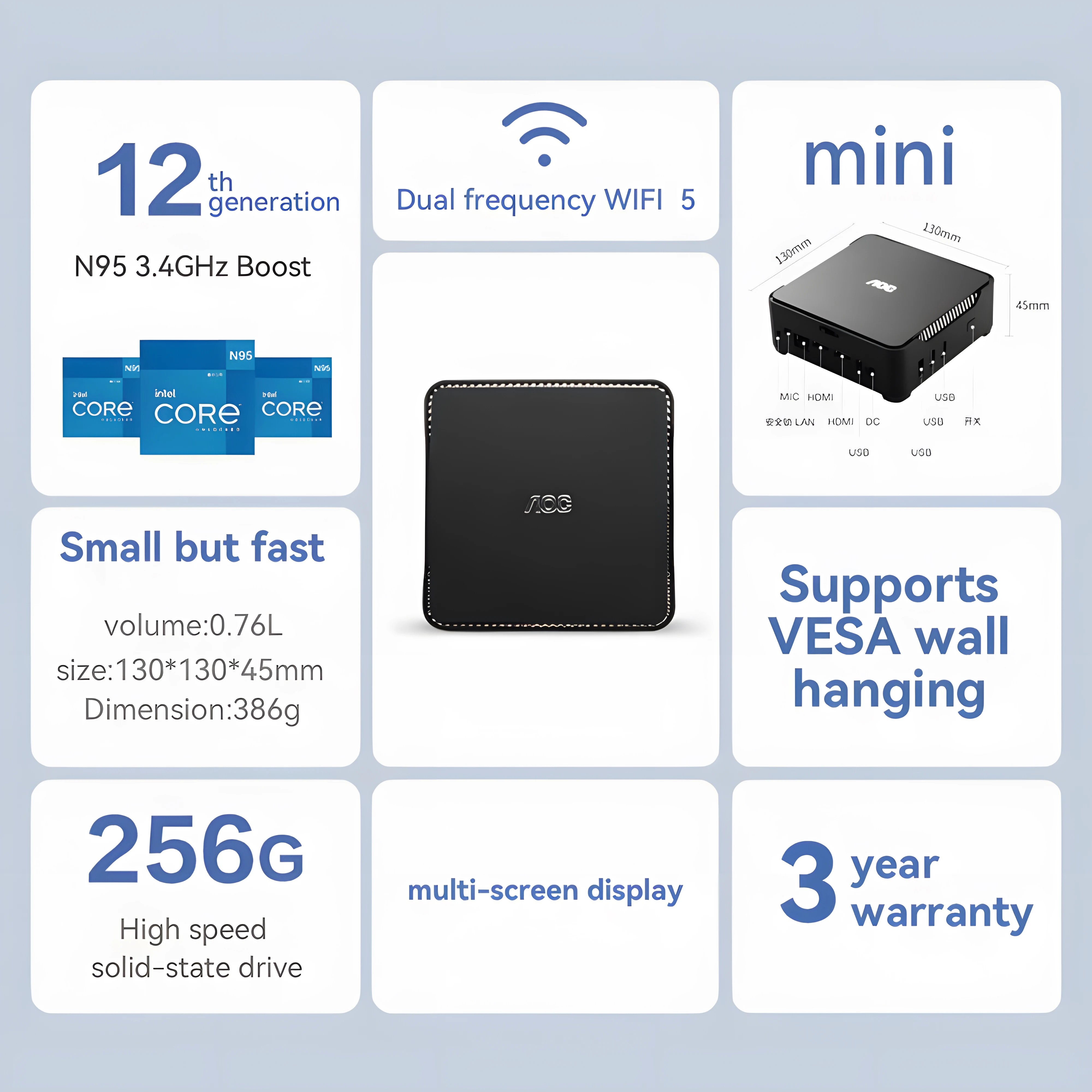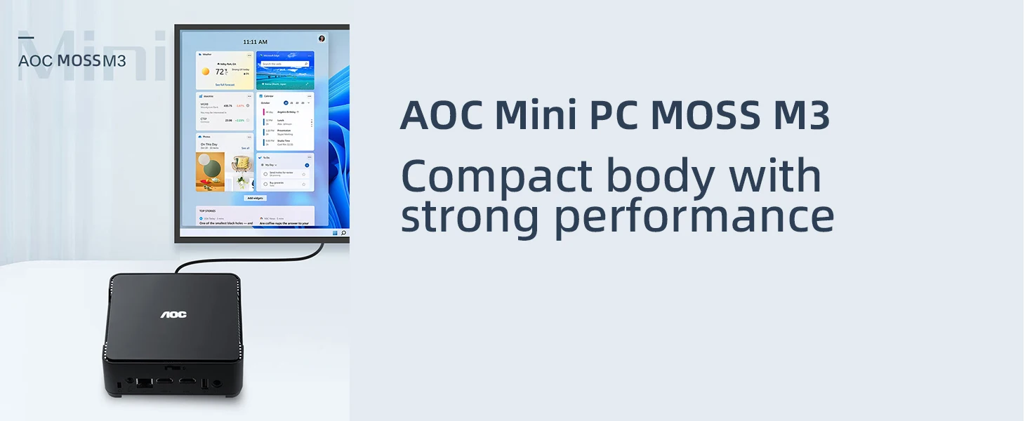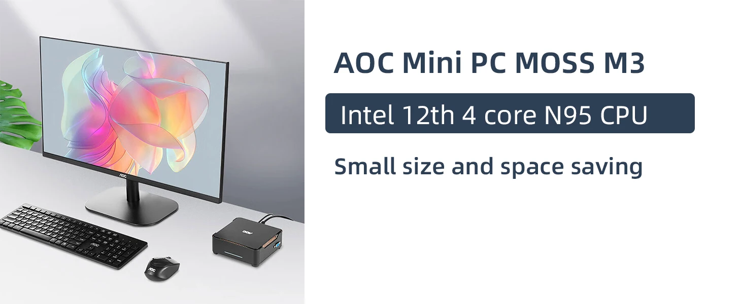Powerful Performance: Equipped with an Intel N95 processor running at up to 3.4GHz, this AOC Mini PC MOSS M3 delivers exceptional processing power, ensuring smooth multitasking and seamless performance for various computing tasks.