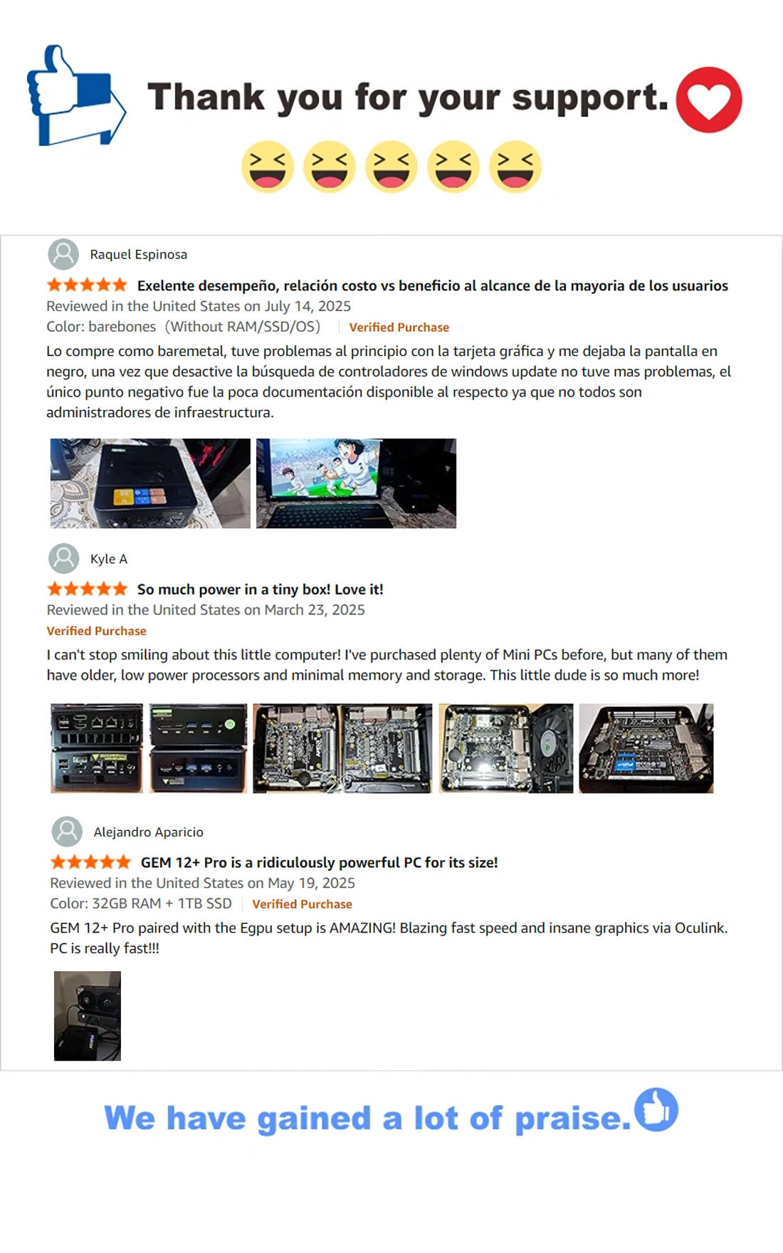 | AOOSTAR GEM12+ Mini PC AMD Ryzen 7 PRO 8845HS 5.1GHz 32GB DDR5 1TB SSD Radeon 780M WiFi6 BT5.2 USB4 HDMI2.1 Mini PC Windows 11 remove | SZBOX TR9 Mini Pc Ultra 5 125HUltra 7 165H/Ultra 9 185H DDR5 5600MHz 2280 NVME SSD WiFi6E BT5.3 Win11 Desktop Gaming Computer remove | GMKtec K12 Gaming Mini PC AMD Ryzen 7 H 255(Upgraded 8745HS) Windows 11 Pro Desktop Mini Computers Barebone WiFi 6E/BT5.2, USB-C remove | SZBOX EXR1 Mini PC AMD R7 8745HS DDR5 4800 MT/s WiFi6 BT5.2 Win11 M.2 2280 NVME PCIE *2 Office Gaming Computer remove | AMD Ren5000 5300U 5475U 5600H 5625U Windows 11 Ryzen DDR4 3200Mhz Wifi6 HDMI Mini PC Diy Gaming Computer GenMachine Mini PC remove | SZBOX T8 Plus Twin Lake N150 MINI PC Windows 11 Pro LPDDR5 8GB/16GB 512GB SSD WIFI5 BT4.2 Desktop Office Gaming Computer remove | |