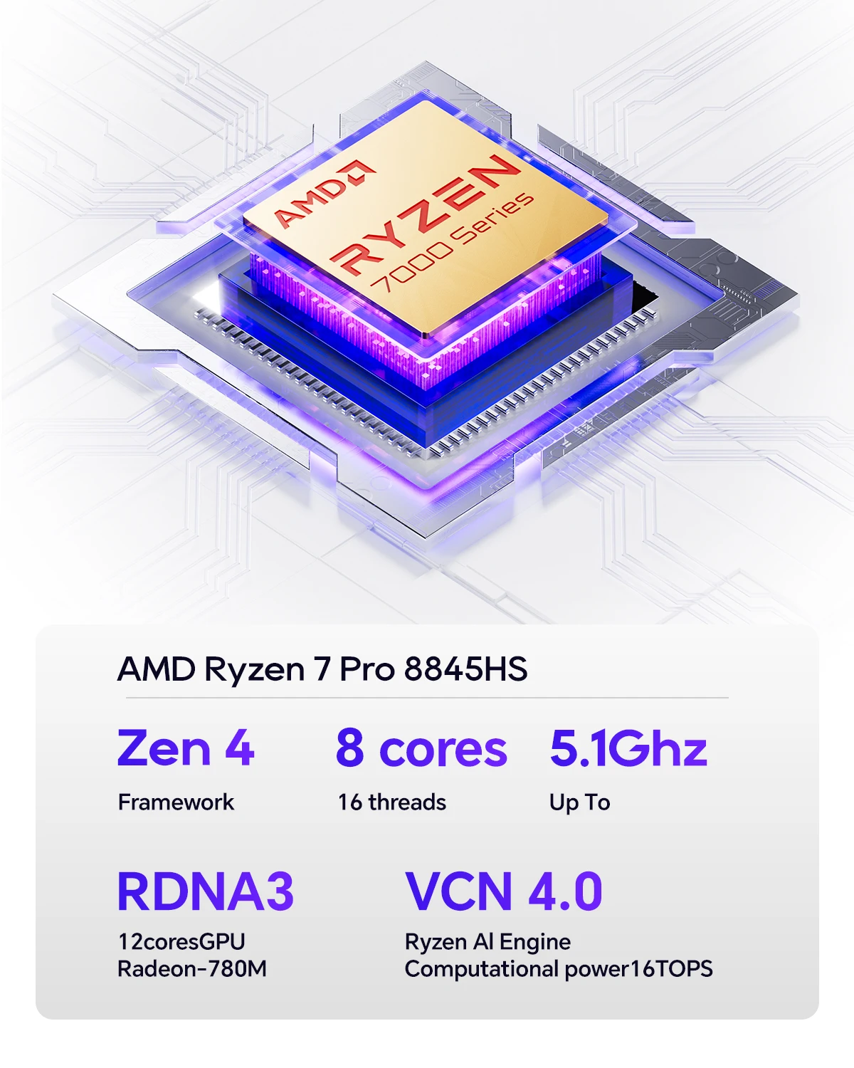 CPU: AMD Ryzen 7 8845HS (3.8-5.1GHz, 16MB L3)