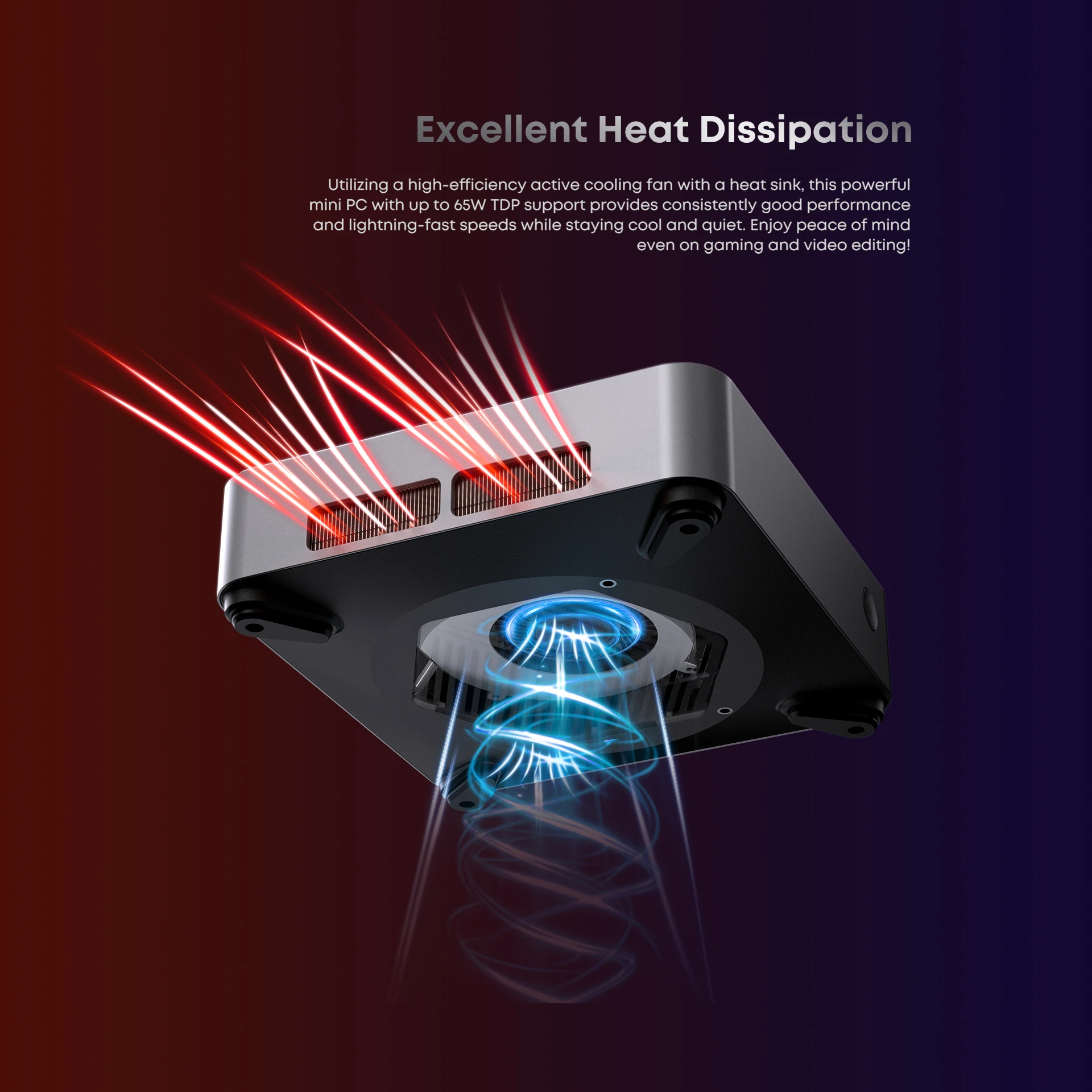 Utilizing a high-efficiency active cooling fan with a heat sink, this powerfulmini Pc with up to 65W TDP support provides consistently good performanceand lightning-fast speeds while staying cool and quiet. Enjoy peace of mindeven on gaming and video editing!