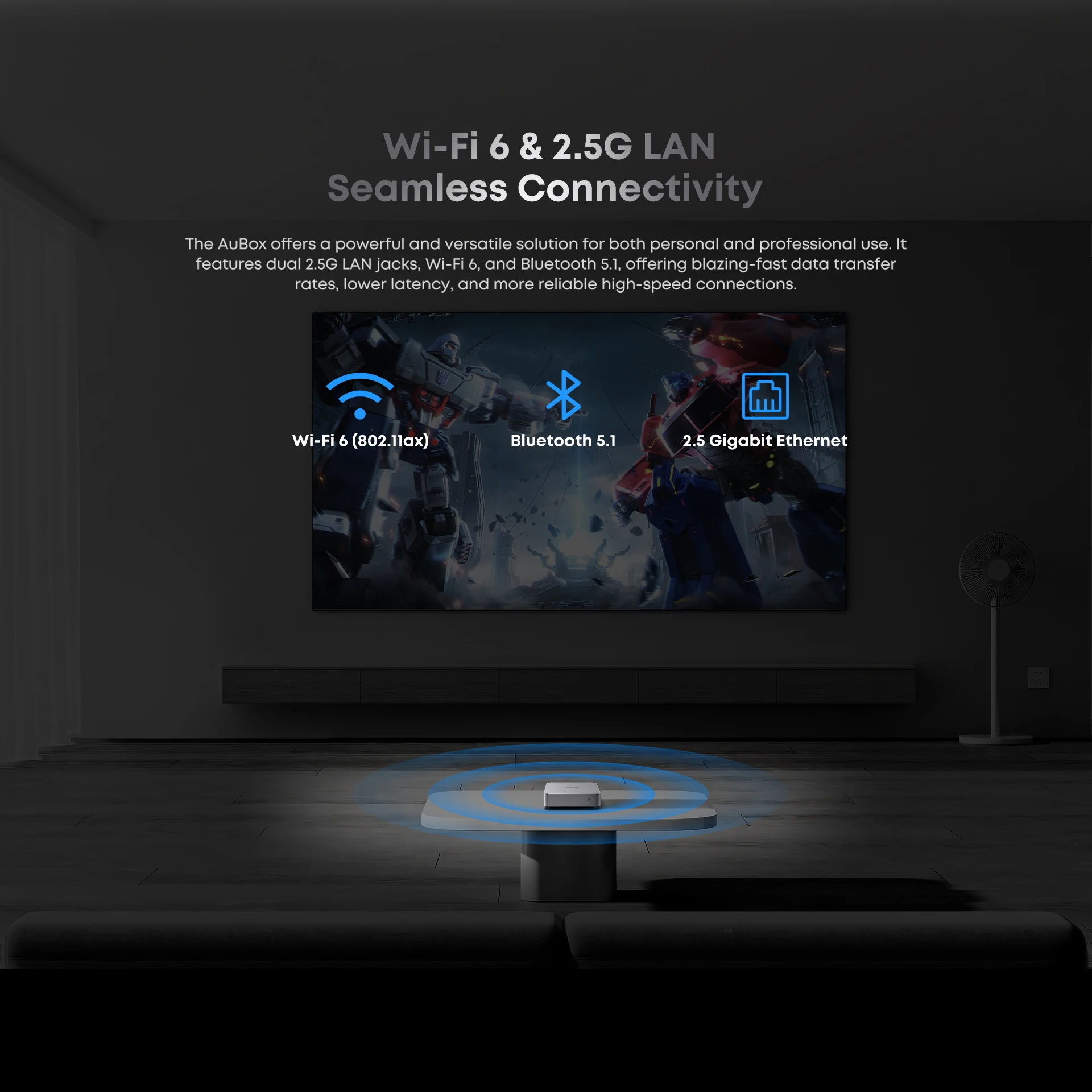 The AuBox offers a powerful and versatile solution for both personal and professional use. itfeatures dual 2.5G LAN jacks, Wi-Fi 6, and Bluetooth 5.1, offering blazing-fast data transferrates, lower latency, and more reliable high-speed connections.