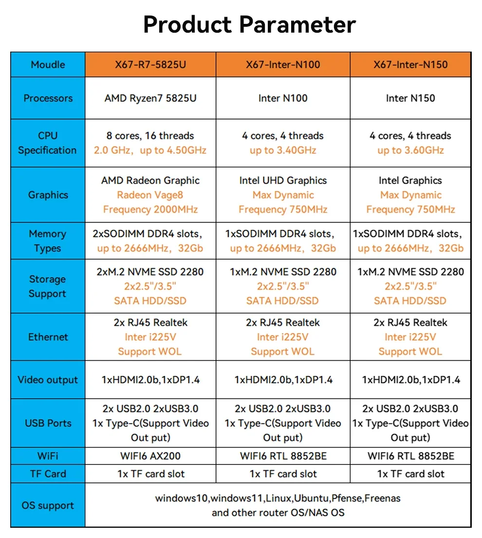 EOVOE NAS Mini PC Barebone Kit with AMD R7 5285U/N100/N150 DDR4 M.2 NVME 2280 WiFi6 Linux Support, Desktop for Home Win11 Ready