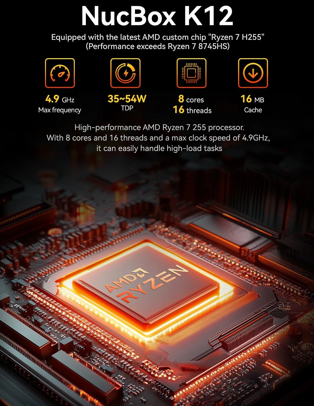 Powered by the AMD Ryzen 7 H 255 processor, this mini Pc ensures smooth and efficient performancefor all your