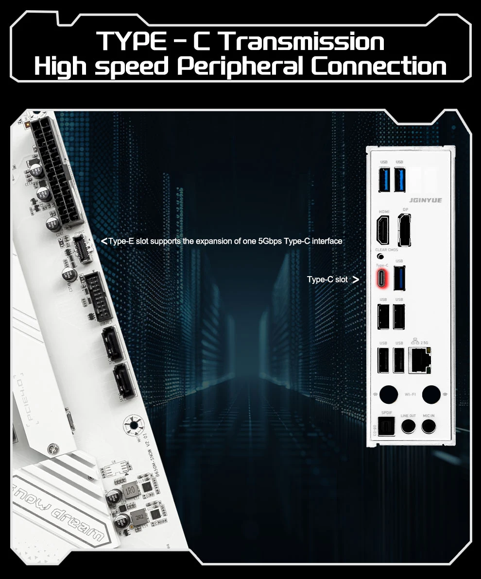 Type-C interface:1xType-E slot, expandable with 1 5Gbps Type-C interface 1xType-C slot