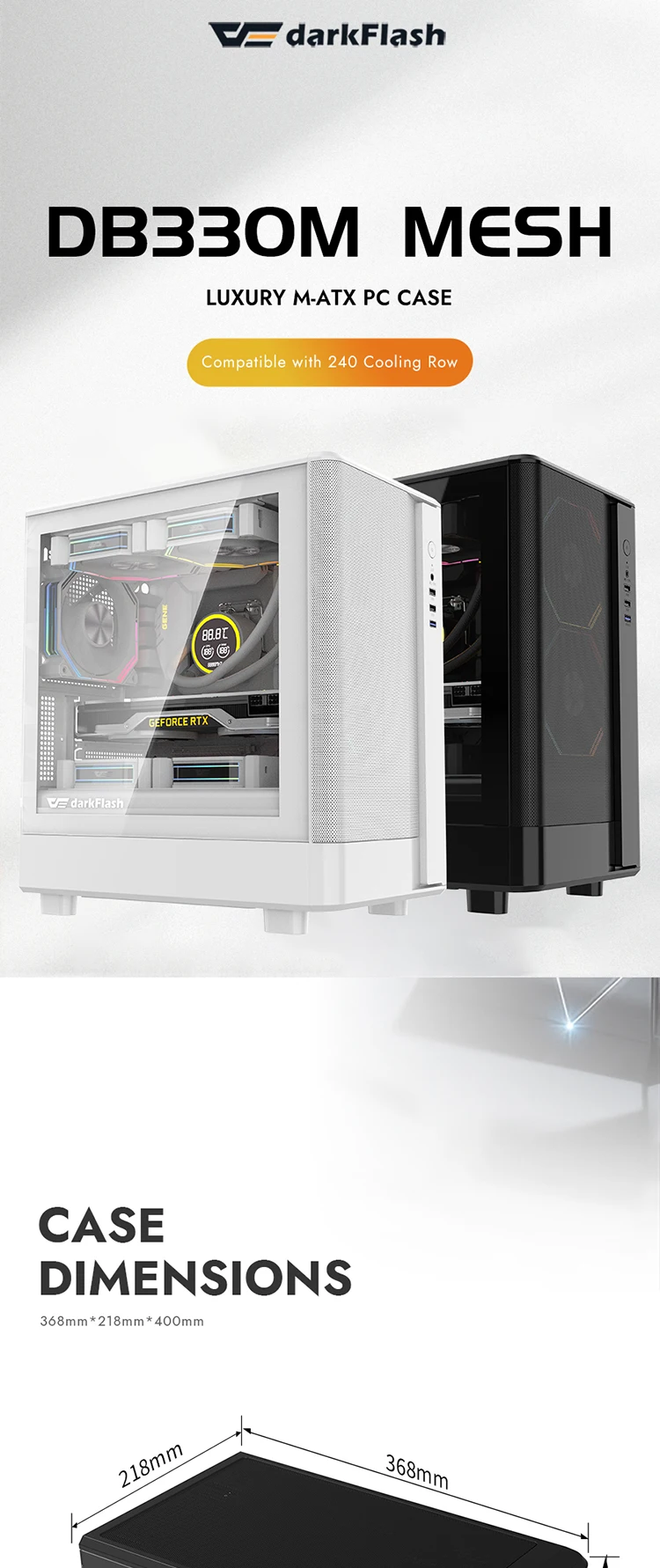 Darkflash DB330M MESH PC Case M-ATX USB3.0 Support 240 Water-Cooled Gamer Cabinet Sided Transparent Glass Computer Case
