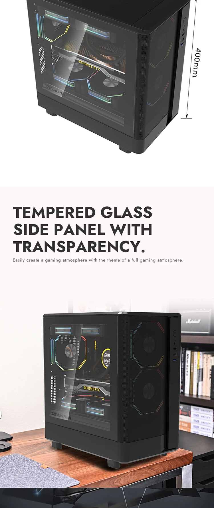 High-concerned chemical / With Power Supply / With Fan / With Side Panel Window / Power Supply Mounted / Dust Filters / RGB Support / 140mm Fan Options / 120mm Fan Options / Expansion Slots / Internal 2.5″ Drive Bays / Internal 3.5″ Drive Bays / Radiator Size / Max GPU Length / Max CPU Cooler Height / Max PSU Length / Case Weight / Case Size / Power Model / Chassis Type / Front Ports / Application / Form Factor / Material / Model Number / Type / Brand Name / Origin / Series