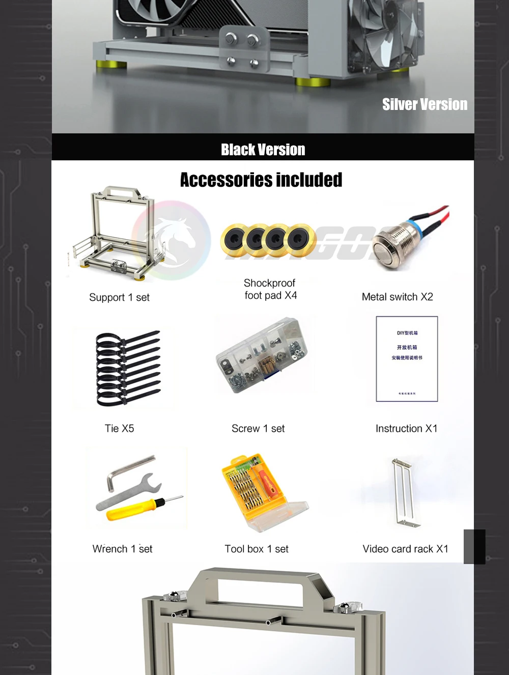 High-concerned chemical / With Power Supply / Power Supply Mounted / RGB Support / Case Weight / Case Size / Power Model / Chassis Type / Application / Form Factor / Material / Model Number / Type / Brand Name / Origin / Style / M/B Support / Power position / GPU Vertical Mounting / GPU Riser Cable / Color