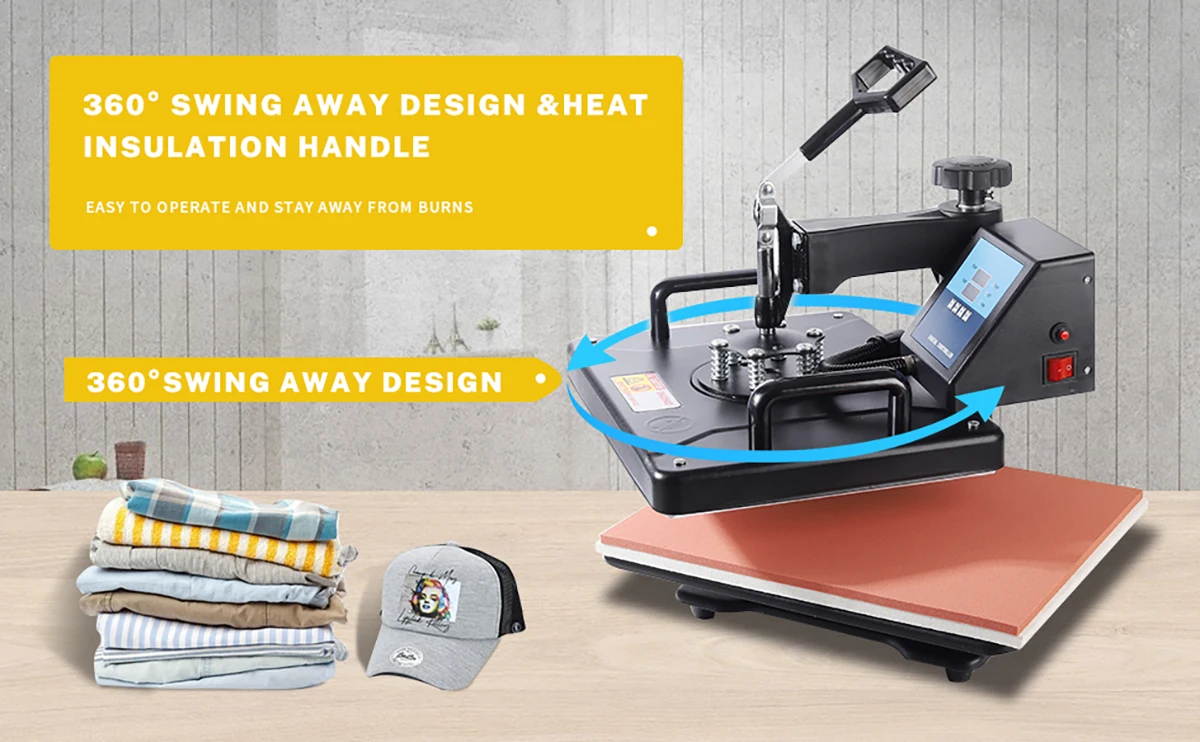 【Precision Control with Interactive Digital Display】– Equipped with an advanced digital controller featuring a dual-display, our heat press machine enables easy toggling between Celsius and Fahrenheit, guaranteeing precise operation. The user-friendly interface simplifies adjustments for a seamless experience.