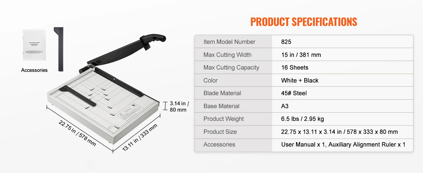 Security First: Your security matters to us. Our paper cutter guillotine features a self-supporting blade design for secure and stable cutting. Plus, it comes with a guard rail and blade lock for peace of mind during use and storage.