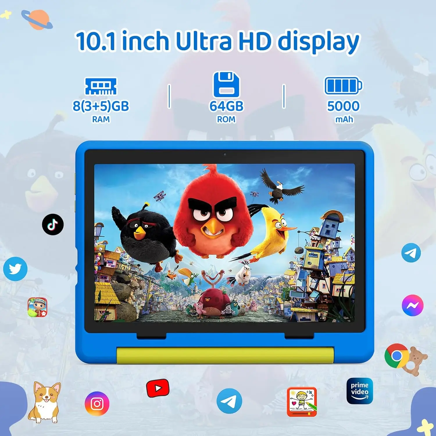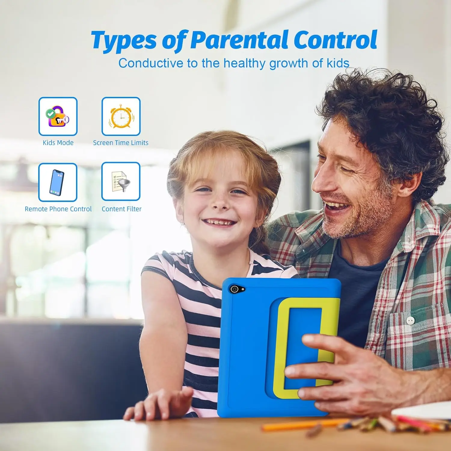 10.1 inch Kid Tablet Android 14 Octa Core 8GB RAM 64GB ROM 1TB Expand with KIDOZ App Eye Protection Touchscreen Shockproof case